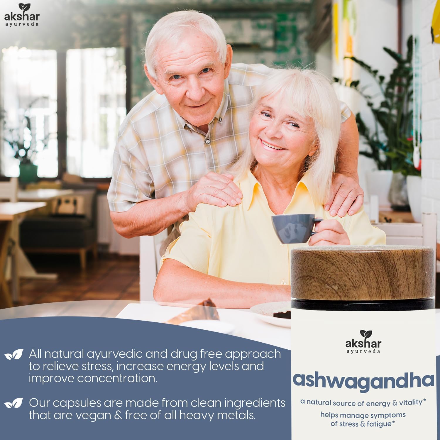 AKSHAR Ayurveda - Ashwagandha Capsules 500mg (60/Pack) with Ashwagandha Root Extract and Powder - Adaptogenic Herbal Support - Vegan Cruelty-Free.