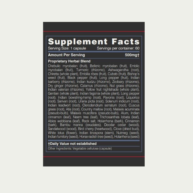 - chiretta, chebulic, and fenugreek which aid in constipation and bowel regularity